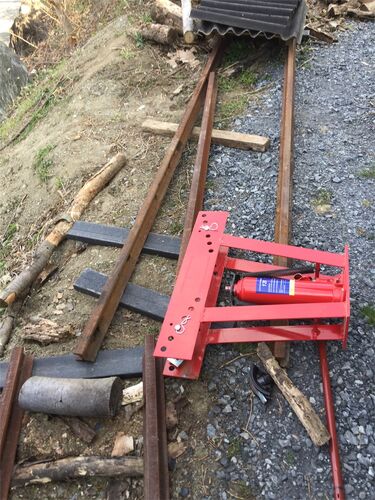 さて、お待ちかね〜の鉄道建設の時間だよっ! 今日は暖かいし、レールをいじるにはもってこいだよね。(๑>◡<๑) 急遽薪を貰えることになったので、このとっちらかった薪割り現場までのルートを確保することに。 そして久々にパイプベンダーのベンジャミン登場…